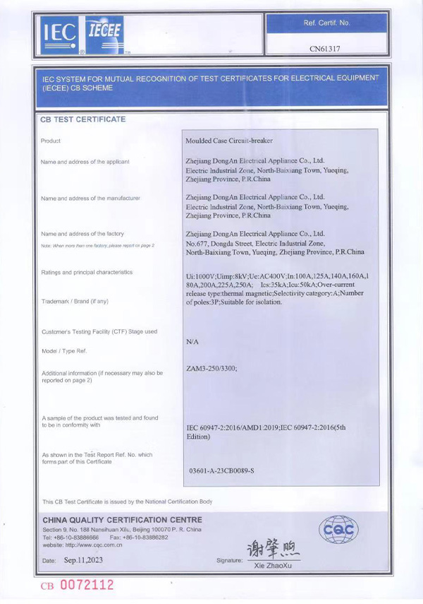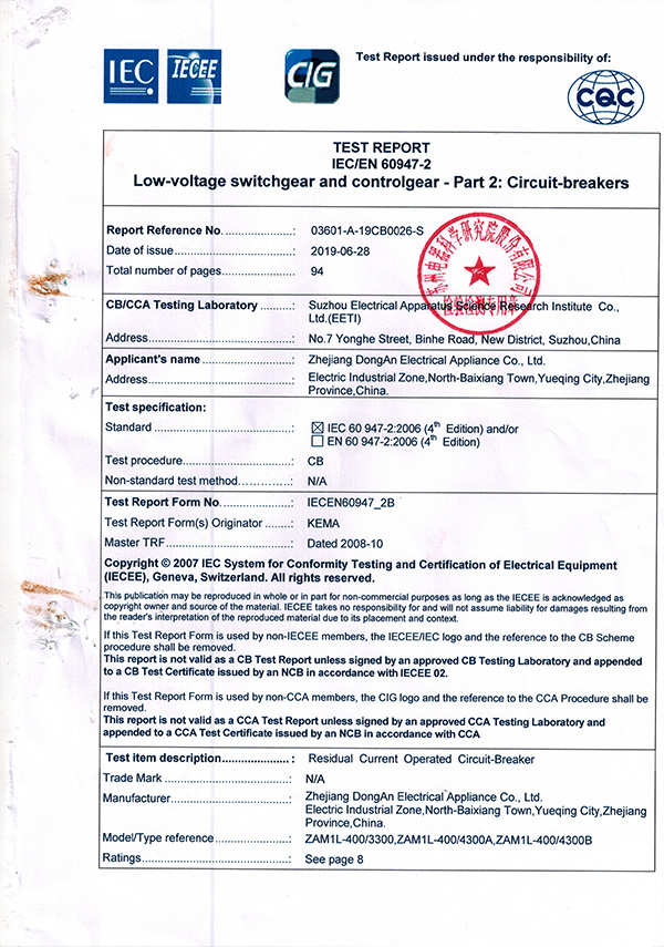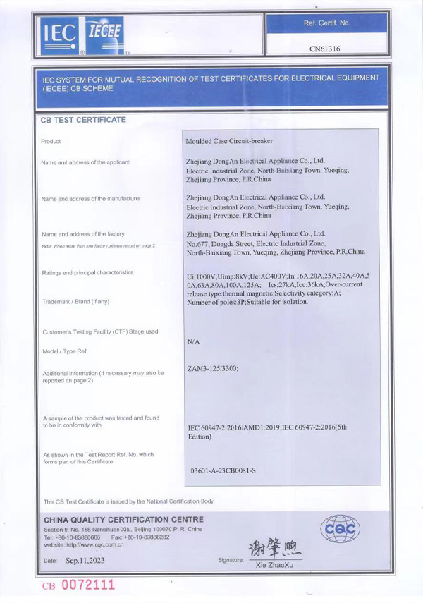 Electronic molded-case circuit breaker rated limit short-circuit breaking capacity Icu: The circuit breaker has two breaking capacity index values: the rated limit short-circuit breaking capacity Icu and the rated short-circuit breaking capacity Ics. As a characteristic parameter, Ics is not only a simple consideration of the breaking capacity of the circuit breaker, but also a durability index—in other words, it ensures normal operation after multiple short-circuit faults.